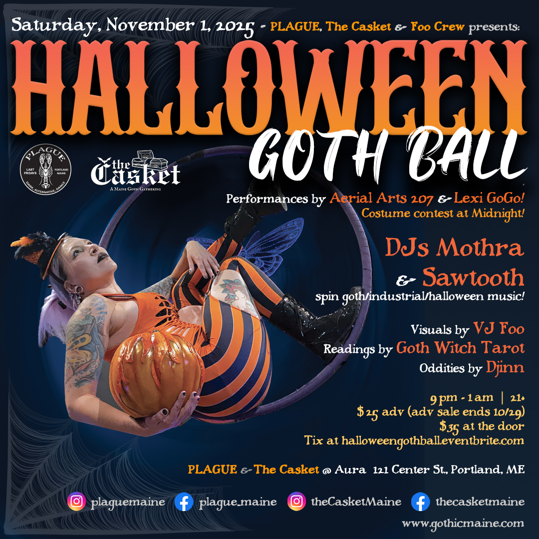 PLAGUE and The Casket, Portland Maine's goth/industrial club night, is every last Friday of the month!